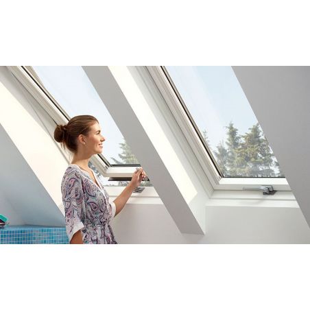 Velux GLU 0061B roof window is made in the performance of "standart plus". Opens the central axis, the opening handle is on the bottom. It equipped with energy-efficient duble-chamber glazed window. Window adhesive are manufactured from white pine lumber with a moisture resistant polymeric coating. Designed for installation in areas with high humidity.