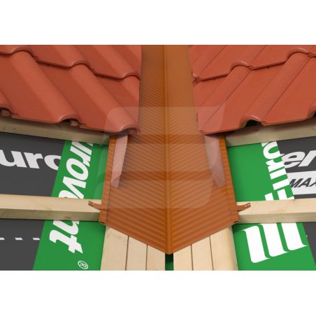 Roof valley Eurovent made of aluminum sheet and covered poliestrovoy paint. Flagon is designed for sealing of the roof between the two ramps. Provides reliable water abstraction with the roofing.