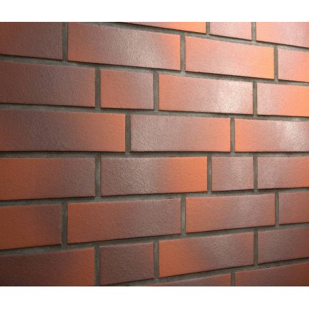 Tile Clinker Feldhaus carmesi aubergin liso has all the qualities of clinker kirpicha- does not change color, durable, cold-resistant, resistant to all the negative effects of the environment. Tiles used for walls of houses, especially in those cases when it is necessary to update the facade of a building without strengthening the foundations. When using angular elements facade tiles obtain a complete imitation of a brick facade. Tiles used in the insulation system of the building as a topcoat. In this case the house warming and updating the facade in one cycle. Paving tile is easy to clean, does not require any repair costs, because it will not crack or fade.
