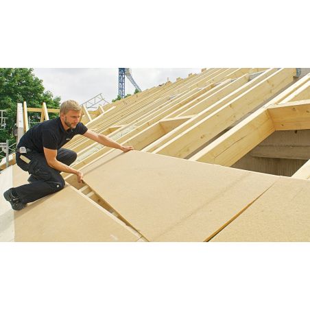 Steico universal 22 wood-fibreboard has good heat-insulating and noise-protective properties. Steico universal 22 board is produced by means of technology of hot pressing of wood fibres, which includes natural wood. Steico universal 22 board has an open structure, which provides good diffusion of water vapour, and therefore, the normal microclimate in the premises is maintained naturally. Steico universal 22 boards are used for continuous decking in roof structures, and the tongue and groove system speeds up installation