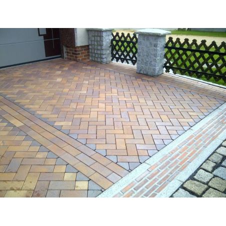 Paving manufactured in the form of bricks and thickness dimensions 200x100 52 and 45 mm.