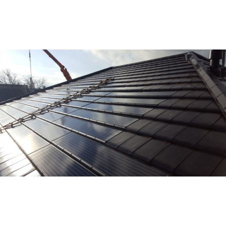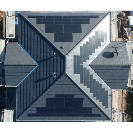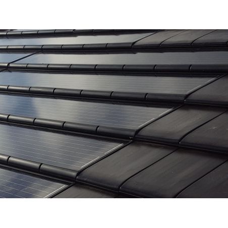 The solar panel Solarziegel G10PV fully integrated into the roof with ceramic tiles Nelskamp G10, serves as an additional source of electrical energy.