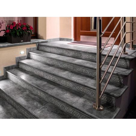 Tile for Bremen anthrazit steps made from quality clay extrusion. It is used for lining the stairs indoors and out.