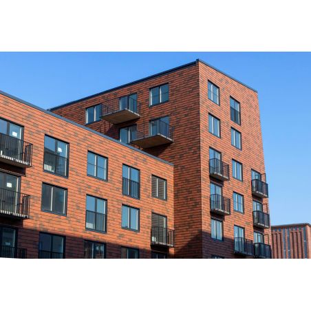 The Red Flamed Rustikotta ventilated façade tiles are made of ceramic and are designed for installation on a load-bearing structure made of metal profiles or wooden beams. System design ventilated facade of ceramic tiles Red Flamed Rustikotta allows to complete the facing of the old building or a new house and one-time assembly of insulation between the bearing profiles. Ceramic tile Red Flamed Rustikotta has high mechanical properties, do not change their color and shape under the influence of atmospheric deposition, ambient air temperature and ultraviolet radiation. For the installation of the ventilated facade with ceramic tiles Red Flamed Rustikotta not necessary to reinforce the foundation of the building. Ventilated façade installation can be carried out in hot and cold weather at negative temperatures.