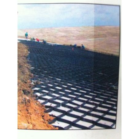 Geogrid G16 for soil reinforcement cell is used for reinforcement of soils in road, hydraulic engineering and other fields of modern construction. Due to the large load capacity and a comparatively small deformation geogrid can be used as an erosion protection of slopes, the construction of railways, roads, viaducts, bridges, tunnels, and to enhance greening coastal waters and channels zone strengthening channels of small streams. As a result of its use significantly reduces construction costs and increases reliability of structures. The material is neutral to aggressive environments, non-toxic, resistant to radiation ultrafioletovoiu, oil, alkali-proof, resistant to soil medium to fresh and salt water, which retains its performance over many years of operation. It is made of plastic material in the form of modules are transported in the folded state and occupies little volume and light in weight, easy in assembling, fastening geogrids operate on surfaces by means of T-shaped anchor 12-16mm and a length of 0.6 to 1.2 m, made of high-strength plastic material or of steel. Between geogrids and surface ground slope stack separating and draining layer of non-woven geotextile density of 200-400 g / m, as a filler used geogrids cells soil, rubble, concrete. Due to the plasticity and flexibility, you can create and strengthen exactly the configuration of channels or drainage ditches, geogrid prevents the leaching of soil and vegetation retains. When using geogrid increases the service life of facilities and most importantly - to reduce future costs for maintenance and repair. All products.