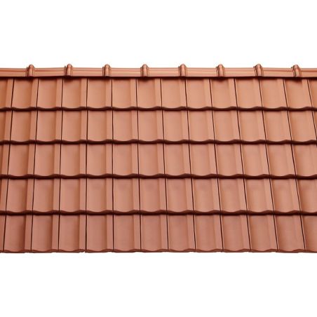 Керамическая черепица Contiton изготовлена из натуральной глины, имеет красный цвет. Красная матовая ангоба-это специальное покрытие, которое наносится на сырую отформованную черепицу перед обжигом, поэтому, черепица имеет устойчивый красный цвет, который не подвержен негативным воздействиям природной среды. Плоская форма черепицы Contiton с небольшим внутренним изгибом -это отличительная черта, которая имеет все плюсы волнистой черепицы в сочетании с геометрическими формами традиционной плоской черепицы «бобровый хвост». Черепица Contiton имеет 2 боковых замка, что позволяет укладывать ее на крышах с малым углом наклона. Верхний замок черепицы позволяет регулировать нахлест в рядах до 4 см. Керамическая черепица Contiton имеет продолжительный срок експлуатации без ремонта до 150 лет! Надежная красная ангоба сохраняет свой вид -не выцветает от солнечных лучей