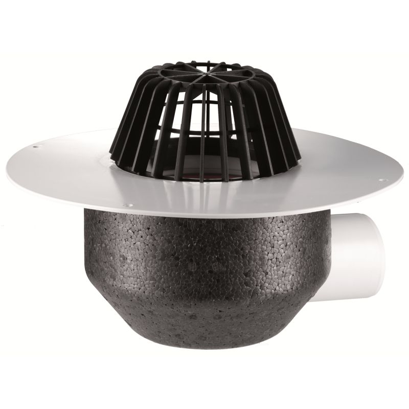 Кровельная воронка DN110 утепленная с ПВХ фартуком и боковым горизонтальным отводом 110 мм.