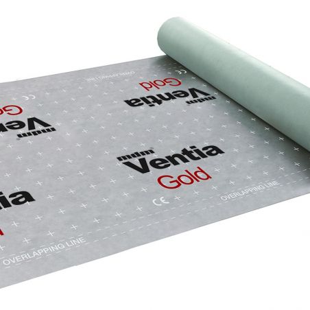 Мембрана Ventia Gold гидроизоляционная диффузионная применяется для гидроизоляции подкровельного пространства, может укладываться на сплошное основание и непосредственно на утеплитель. Мембрана состоит из внутреннего функционального микропористого полипропиленивого слоя, который задерживает крупные молекулы воды, но пропускает более мелкие молекулы пара, и двух защитных наружных слоев из нетканого полипропилена. Высокая способность мембраны Ventia Gold пропускать через себя пар позволяет эффективно выводить влагу из утеплителя, что значительно снижает потери тепла. Гарантия производителя 15 лет.