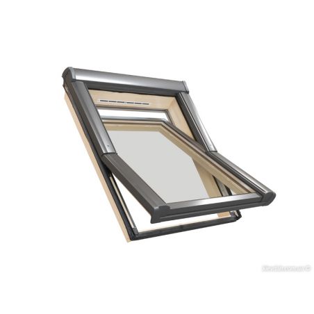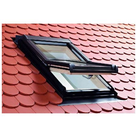 Окно мансардное Roto Designo R4 H деревянное с центральной осью открывания. Ручка открывания расположена снизу окна. Стеклопакет окна Roto Designo R4 H однокамерный энергосберегающий с наружным закалённым стеклом. Установка окна Roto Designo R4 H в кровлю выполняется сертифицированными специалистами, которые могут профессионально врезать окно в существующую кровлю из керамической черепицы, шифера, битумной или металлочерепицы.
