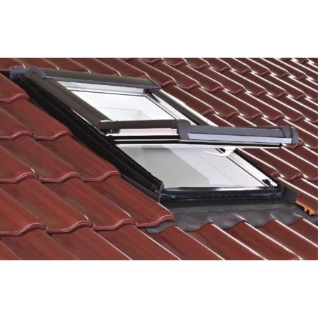 Окно мансардное Roto Designo R4 K пвх с центральной осью открывания. Roto Designo R4 K. Для установки окна Roto Designo R4 K в кровлю используются специальные гидроизоляционные оклады: оклад EDR ZIE для профилированного материала с высотой профиля 5 см, оклад EDR SDS для плоского кровельного материала (плоская черепица, сланец), оклад EDR BTN для битумной черепицы, оклад EDR HZI для черепицы с высокой волной 9 см.