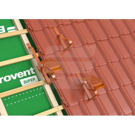 Кровельная ступень в виде полного комплекта для монтажа. Кровельная ступенька монтируется на каркас кровли. Надёжная конструкция из оцинкованной стали обеспечивает безопасное передвижение людей по кровле. В состав комплекта входят: держатель Eurovent SUPPORT и кровельная ступень Eurovent STEP изготовлена из оцинкованной стали. Используется для перемещения в области кровли со склоном от 15˚ до 60˚. На всей поверхности обладает системой тиснений, которая сопротивляется скольжению. Комплект оборудован ручкой. Доступен в оцинкованном варианте и в нескольких цветовых вариантах раскрашенных порошковой краской по палитре RAL.