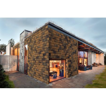 Плитка для вентилируемого фасада Red Grunge Flamed Rustikotta изготовлена из керамики, предназначена для монтажа на несущую конструкцию из металлических профилей или деревянного бруса. Система конструкции вентилированного фасада с керамической плиткой Red Grunge Flamed Rustikotta позволяет выполнить облицовку старого здания или нового дома и одновременно смонтировать утеплитель между несущими профилями. Керамическая плитка Red Grunge Flamed Rustikotta имеет высокие механические свойства, не меняет свой цвет и форму под воздействием атмосферных осадков, температуры окружающего воздуха и ультрафиолетового солнечного излучения. Для монтажа вентилируемого навесного фасада с керамической плиткой Red Grunge Flamed Rustikotta не требуется усиливать фундамент здания. Монтаж вентилируемого фасада может выполняться в жару и холодное время года при отрицательных температурах.