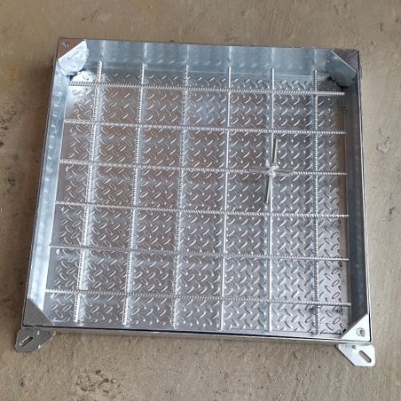 Люк канализационный квадратный под заполнение изготовлен из оцинкованной стали, квадратная форма люка позволяет выполнять скрытый монтаж на площадках, которые вымощены брусчаткой, тротуарной плиткой или террасными плитами. Люки канализационные стальные под заполнение могут эксплуатироваться в пешеходных зонах и в местах возможного проезда легкового транспорта. Люки стальные технологические могут заполняться бетоном в качестве финишного покрытия. Для заполнения технологических стальных люков может использоваться брусчатка или плитка, которыми выложены дорожки, площадки и другие площади ландшафта. Необходимый класс эксплуатационной нагрузки А или В достигается при условии заполнения нижней части крышки люка бетоном соответственной марки (С 35/45). Подъем крышки технологического стального люка осуществляется с помощью специальных винтовых ключей, которые идут в комплекте с люком.
