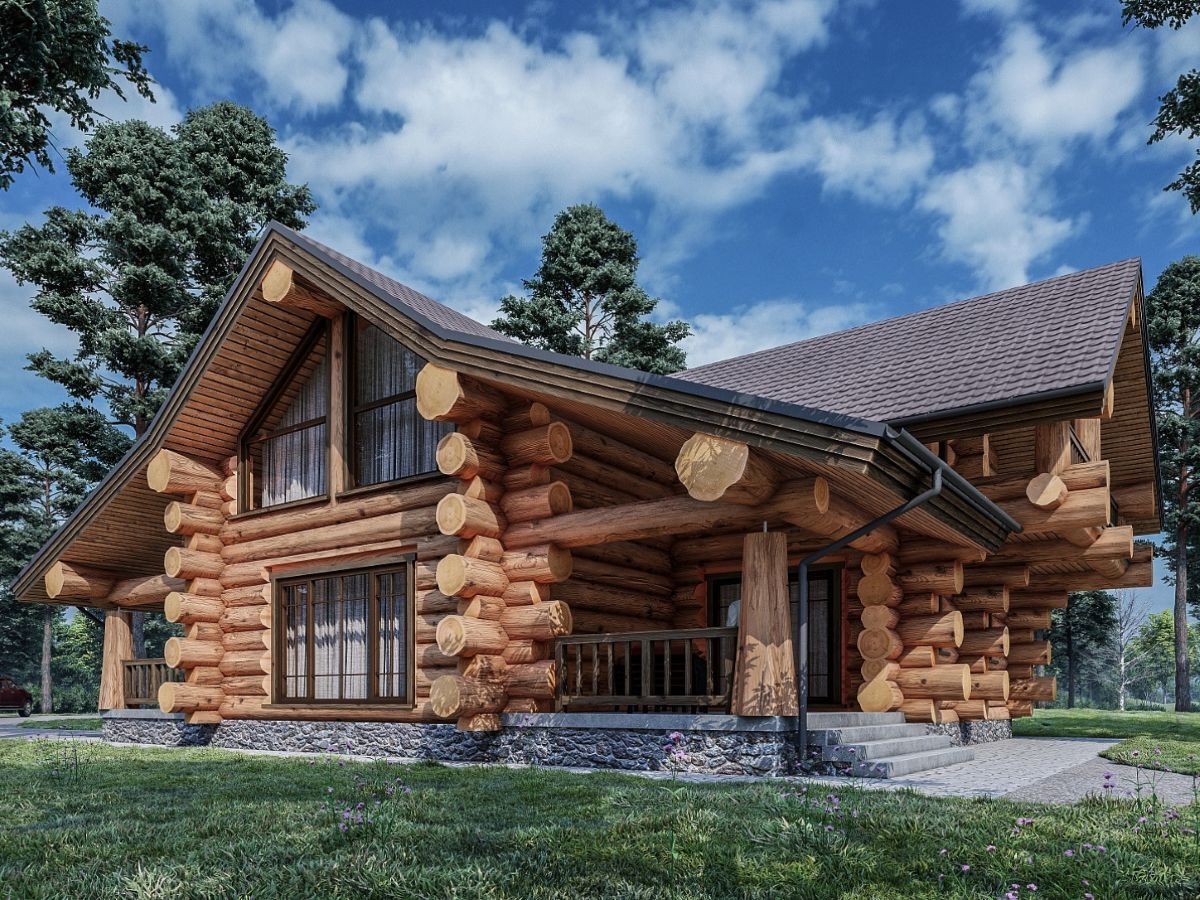 Сланцева покрівля на будинку зі зрубу