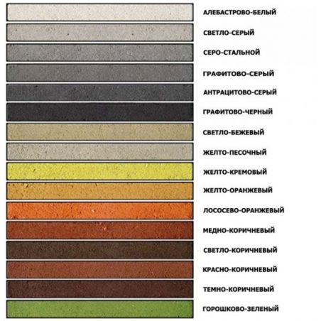 Колір: сірий, білий, чорний, темно-сірий, антрацитовий, cвелто-бежевий, світло-сірий, коричневий , червоно-коричневий.