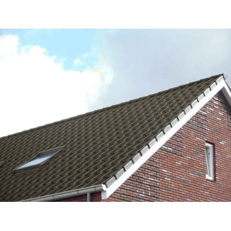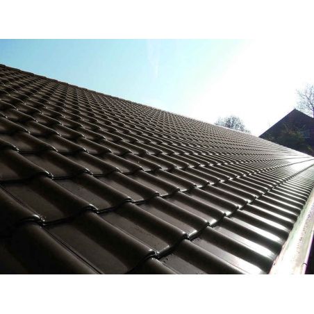 Крупноформатна модель F 8 1/2 черепиці Nelskamp Braun коричнева ангоба дозволяє знизити вартість квадратного метра покрівлі і знизити час на монтаж черепиці, чорний колір надає покрівлі благородний вид.