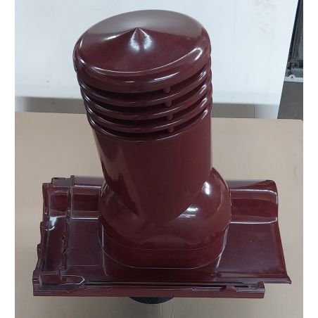 Черепиця прохідна вентиляційна Roben Piemont Trentino складається з нижньої частини, яка відповідає розміру черепиці Roben Piemont, колір вишнева глазур і верхньої вентиляційної труби 150 мм.