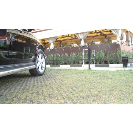 Газонні решітки додають трав'яному покриттю високої стійкості до механічних навантажень, перешкоджає утворенню колії, складається зі структури модулів (1кв.м. = 3,7модуля), система замків, розташованих по краях решіток, забезпечує надійне з'єднання модулів між собою, а також допомагає ефективно розподіляти навантаження між з'єднаними модулями. Виріб виконаний з пластика в зеленому кольорі. Газонні решітки зелені застосовуються для обладнання автомобільних стоянок ( "зелена парковка"), земельних ділянок з трав'яним покриттям (проведення ярмарків, фестивалів, тимчасових кемпінгів і т.д.), зміцнення проходів до будинку чи саду, терас, навколо спортивних споруд. Газонні решітки вільно пропускають воду безпосередньо в грунт, здатні витримувати навантаження до 25т.