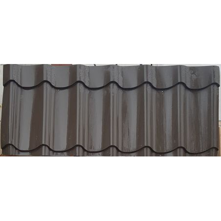 Металочерепиця Monterey 8017 PE коричнева класичного профілю проводиться з оцинкованого металу з полиестровим захисним покриттям. Корисна площа покрівельного покриття становить 1100 мм, повна ширина листа 1180 мм, довжина листа виготовляється за індивідуальним замовленням від 0,45 до 7,0 метрів.