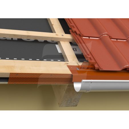 Використовується для захисту вентиляційних отворів в фасадах будівель і району схилу в скатних, вентильованих покрівлях від птахів, гризунів, і комах. Захищає звис від надування листя і інших забруднень, забезпечуючи одночасно належну вентиляцію і циркуляцію повітря в районі схилу покрівлі. Підходить майже для всіх видів покрівельних покриттів.