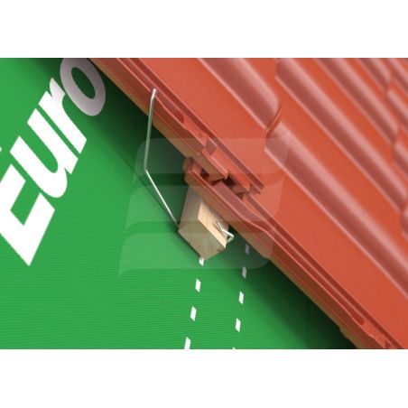 Універсальна скоба для монтажу керамічної черепиці. Виготовлена з профільованої в букву "J" оцинкованої сталевого дроту. Забезпечує швидкий і міцний монтаж черепиці на рейку розміром шириною 50 мм. Монтується один кінець за бічний замок черепиці, а другий за рейку.