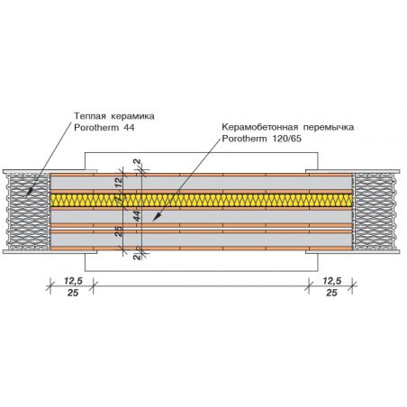 Керамо - залізобетонні перемички Porotherm Thermo 2,5 м з попередньо напруженою арматурою призначені для пристрою віконних і дверних прорізів шириною 2250 мм в несучих і самонесучих стінах.