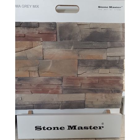 Декоративна плитка Roma Grey-mix Stone Master "під камінь", колекція Rock Style, має фактуру скелі з сильно посіченою і чітко структурованою поверхнею. Відмінний спосіб виділити певний фрагмент простору. Матеріал - композитний кольоровий бетон, може застосовуватися для обробки стін всередині і зовні будівлі.
