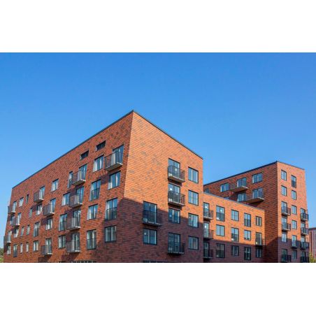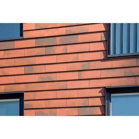 Плитка для вентильованого фасаду Red Flamed Rustikotta виготовлена з кераміки, призначена для монтажу на несучу конструкцію з металевих профілів або дерев'яного бруса. Система конструкції вентилювати фасаду з керамічною плиткою Red Flamed Rustikotta дозволяє виконати облицювання старої будівлі або нового будинку і одночасно змонтувати утеплювач між несучими профілями. Керамічна плитка Red Flamed Rustikotta має високі механічні властивості, не змінює свій колір і форму під впливом атмосферних опадів, температури навколишнього повітря і ультрафіолетового сонячного випромінювання. Для монтажу вентильованого навісного фасаду з керамічною плиткою Red Flamed Rustikotta не потрібно підсилювати фундамент будівлі. Монтаж вентильованого фасаду може виконуватися в спеку і холодну пору року при негативних температурах.