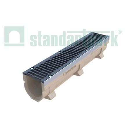 Лоток полімербетонний Н 210 DRIVE Ду100 з чавунною решіткою системи водовідведення посиленою серії DRIVE є оптимальним поєднанням вартості та технічних характеристик. Лотки застосовуються для збору та відведення води з протяжних великих поверхонь, виконані з полімербетону. Полімербетон - це бетон, в якому в'язка речовина -органіческій полімер; будівельний і конструкційний матеріал, що представляє собою затверділу суміш високомолекулярної речовини (поліефірна смола) з мінеральним заповнювачем. У порівнянні з цементними бетонами, полімерні і полімерцементні бетони мають більшу міцність на розтягнення, меншою крихкістю, кращої деформуємість. У них більш високі; водопроникність, морозостійкість, опір стиранню, стійкість до дії агресивних рідин і газів. Полімербетон ще називають "штучний камінь" через його міцності і зовнішньою подібністю. Комплектуються дані лотки підсилюють насадками з оцинкованої сталі, які впресовані в бічні стінки лотка і водоприймальних щілинними решітками з високоміцного чавуну. Мають клас навантаження D, що відповідає 400kN = 40 т. Преим уществует серії DRIVE: