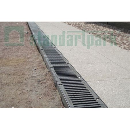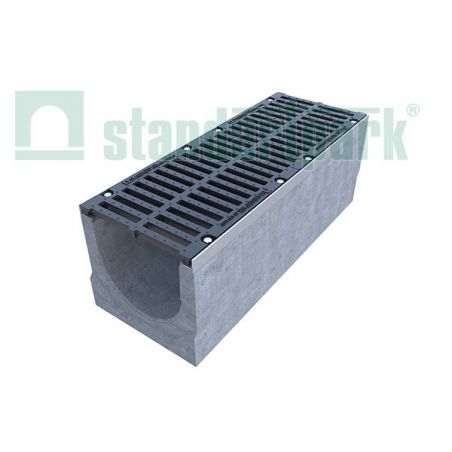 Лотки фібробетони, особливо міцні, ударостійкі посиленою серії MAX - це серії лотків, посилених сталевими оцинкованими насадками і укомплектовані чавунними ґратами класом навантаження D400 = 40т, E600 = 60т, F900 = 90т. Комплекти високоміцних лотків знаходять широке застосування при будівництві та реконструкції вулиць, площ, парків культури і відпочинку, вокзалів, аеропортів, також водостоками посиленою серії комплектуються АЗС, станції технічного обслуговування вантажного транспорту, складські комплекси і термінали, виробничі площі та автостради, автобусні та вантажні парки , де високі механічні і динамічні навантаження, а також місця з інтенсивним рухом транспорту. Лотки посиленою серії MAX захищені насадками з оцинкованої сталі, які впресовані в бічні стінки лотка і пов'язані з заставними анкерами, армирующими лоток. У конструкції анкерів передбачена можливість заміни кріплення болта і гайки, що робить систему ремонтоспособность і довговічний, добре продумана система кріплення решітки до лотка дозволяє уникнути руйнування стінок каналу під дією великих поверхневих навантажень, виробляються лотки посиленою серії з фібробетону, полімербетону та пластику, а також з різними гідравлічними перетинами (DN 110, 160, 200, 300 і 500) і висотами (від h 130 до 600). Виникають ситуації, коли неможливо створити бажаний ухил за допомогою поверхні, але при цьому лінійний поверхневий водовідвід повинен бути і надійно функціонувати, для цього в посиленою серії MAX з фібробетону, передбачена серія літаків з різними висотами, що при установці дозволяє створювати так званий "каскад" , тобто перепад висот, за допомогою якого вода через пескоуловитель буде йти в зливову каналізацію. Даний лоток виготовлений з фібробетону, має клас навантаження Е 600 = 60 т, завдяки збільшеній корисної ширини лотка до 300 мм, лоток здатний пропустити дощових і стічних вод більше 70 л в секунду, поставляється стандартним комплектом: лоток з підсилюють насадками, дві решітки чавунні щілинні довгою 500 мм (марка чавуну ВЧ-50), кріплення (болти і гайки). Для забезпечення герметичного з'єднання лотків між собою використовують однокомпонентний герметик на основі MS-полімерів. Вся продукція Стандартпарк сертифікована відповідно до міжнародної системи управління якістю.