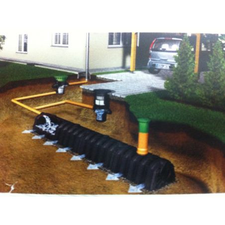1. Обмін повітря і вентиляція в тунелях сприяє створенню умов для життєдіяльності аеробних бактерій, які доочищають стоки. 2. Хороша вентиляція дозволяє значно збільшувати довжину дренажу і як результат, збільшення обсягу прийнятих стоків. 3. Простота монтажу - тунелі легко з'єднуються між собою, на кінцях встановлюються заглушки. 4. Економічність - мінімум земляних робіт і через не великої ваги (11 кг) відсутня необхідність у використанні спеціальної техніки. 5. Висока місткість - (в три рази вище, ніж у гравійної траншеї). 6. Легко транспортується - (завдяки пустотілої конструкції, поміщається 42 тунелю на паллету). 7. Витримує вагу транспортних засобів 3,5 т / 1м.кв.